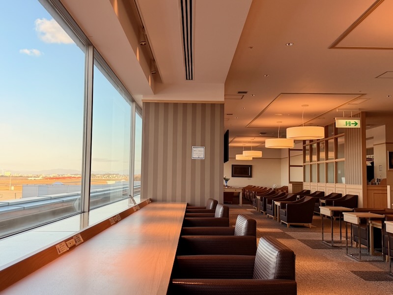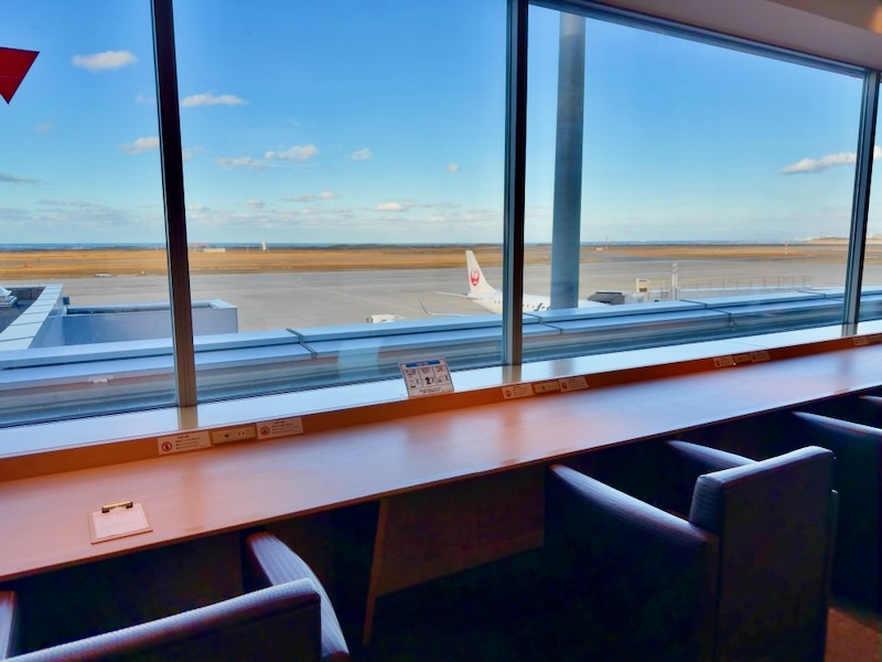 ラウンジ内は空いてたので、一番奥の窓側の席を確保しました。