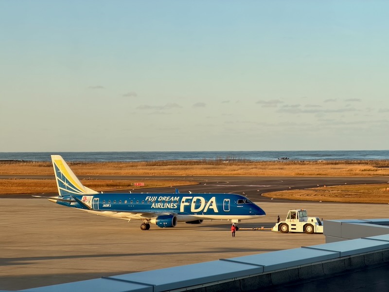 離発着の数はそんなに多くはないですが、この日は「フジドリームエアラインズ」の青色の機体を見る事が出来たのが良かったです。