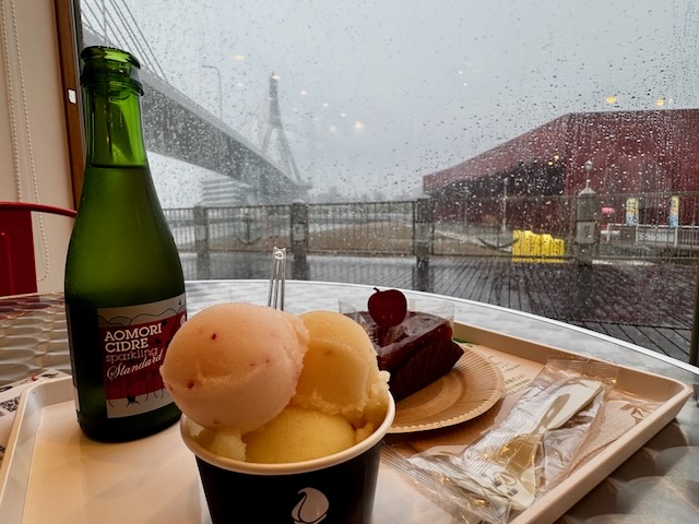 中にはイートインスペースもあったので、雨宿りも兼ねてシードルをいただくことにしました。