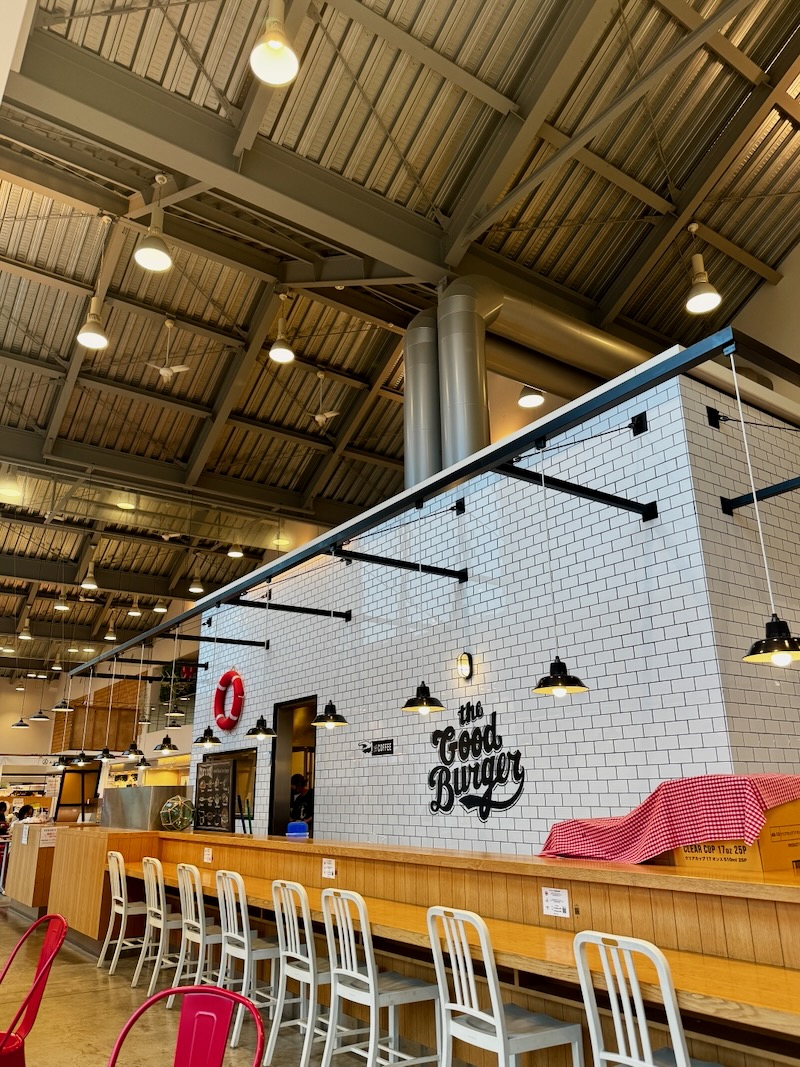 座った席から後ろを見たらこんな感じで、天井高いのも良いし、ちょっと海辺のお店感があるのも良いし、めちゃくちゃ素敵な雰囲気でした。