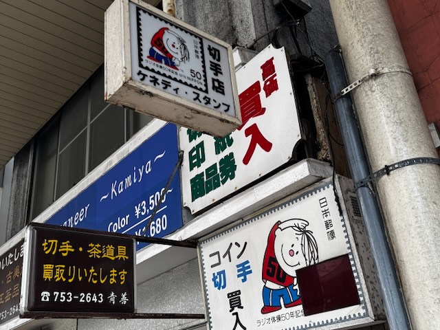 歩いてると、懐かしい切手図柄の看板を見つけちゃいました。