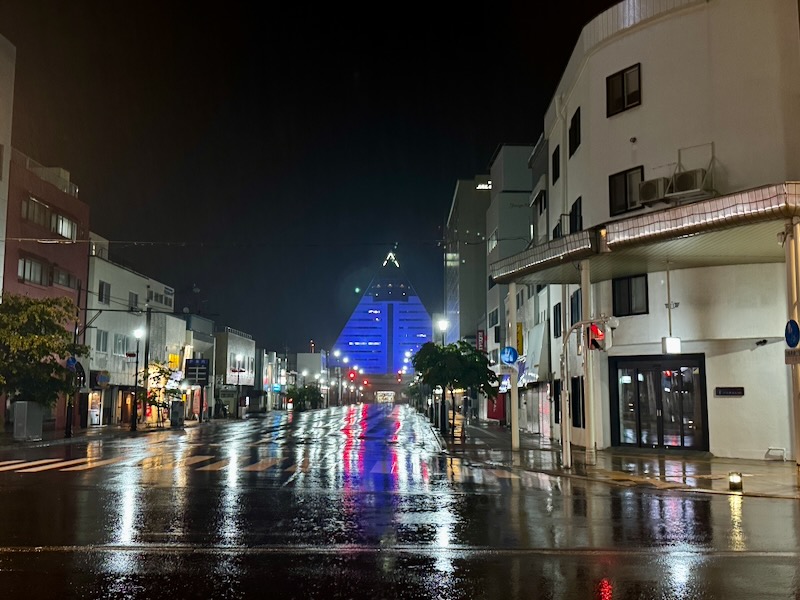 三角形の「青森県観光物産館アスパム」がブルーに光ってるのが妖しくて素敵でした。
