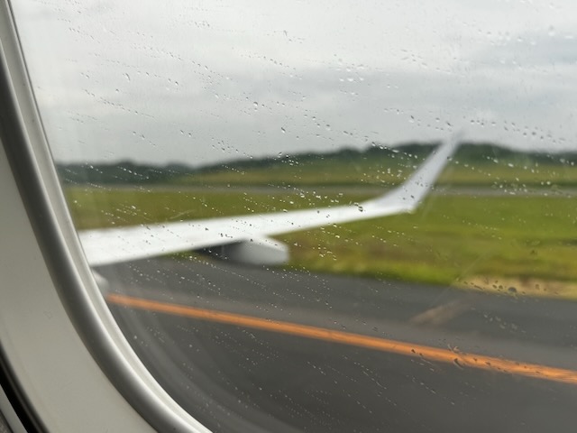 降り出した雨の中、定刻でテイクアウト!ぢゃない、テイクオフ!!