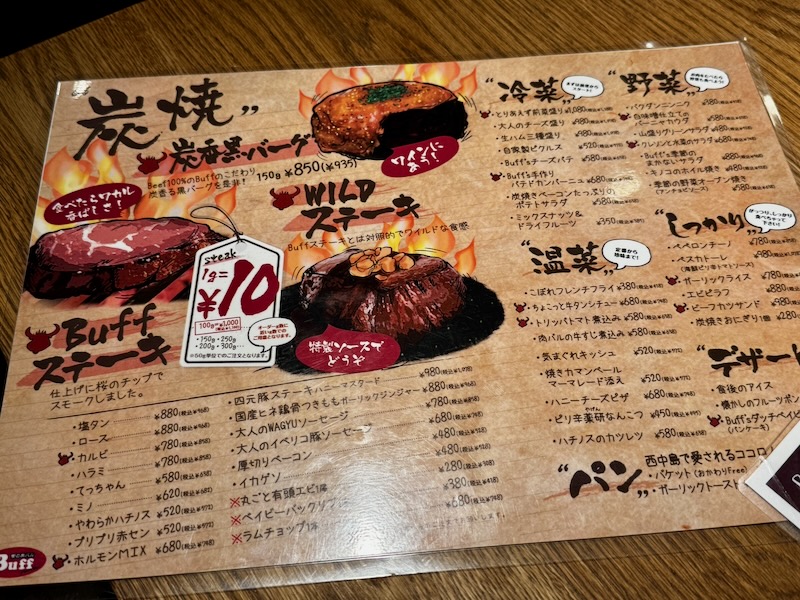 「Buffステーキ」は、「1g=10円」で、50g単位での注文というシステムでした。