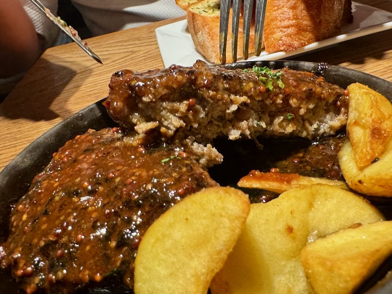 大好きな「ガーリックトースト」は、にんにくのみじん切りが見た目的にもテンアゲだし、肉バルということで、お肉もしっかりいただいてきました。
