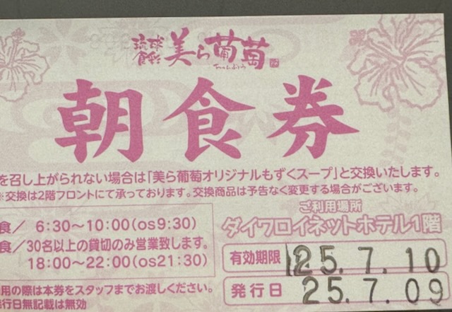 素泊まりで予約してたんですが、前日に朝食を申し込んだら、朝食券をいただけました。