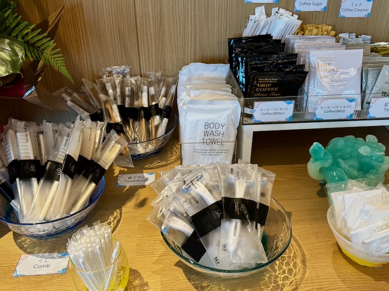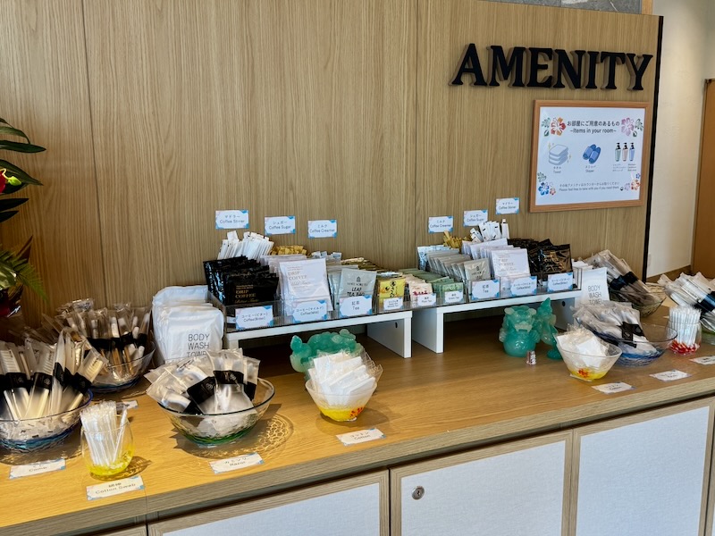 ウェルカムドリンク、自動チェックイン機、アメニティバー等もこちらにありました。