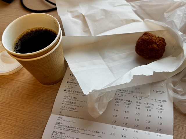 お腹いっぱいになったので、テイクアウトコーヒーを持って、お部屋に戻ろうとしたら、「お部屋でどうぞ」と袋を渡されました。