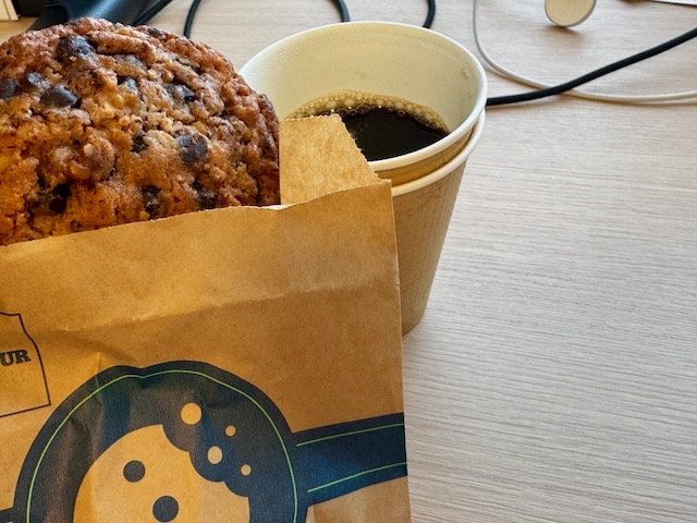 昨日チェックアウト時にいただいた、ダブルツリーの「チョコチップクッキー」もコーヒーと一緒にいただきました♪