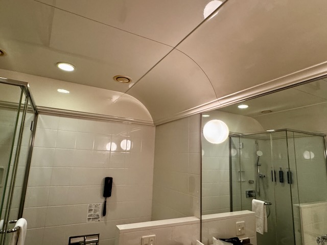 ところで、バスルームの天井の形状が丸いことに今さら気が付いたんですが、オサレでイイ感じです。