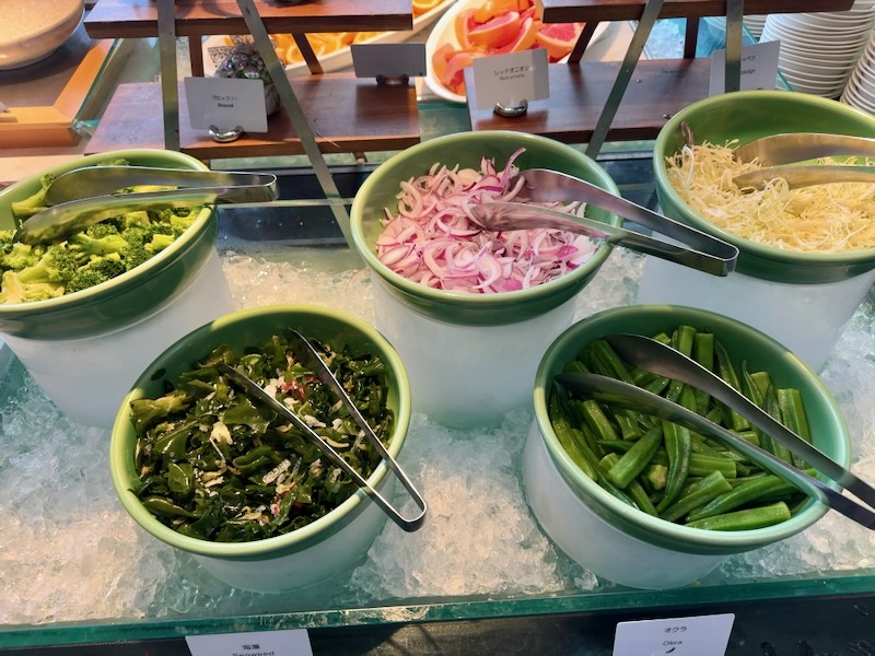 サラダコーナーも充実してて、大好きなオクラは丸ごと山盛りです。
