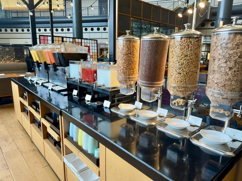 ヒルトン福岡シーホークさんの朝食編です。会場はいつも通り4階の「ブラッセリー&ラウンジ シアラ」です。カクテルタイムの時も「人は少なめ?」と感じましたが、朝食時はさらに顕著に感じられて心配になるくらいでした。それでも通常通りフルビュッフェでの提供だったので、ありがたい限りでした。