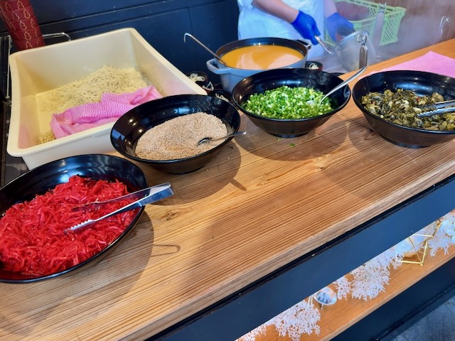 作っていただいたら、自分で好きなトッピングを入れて完成です!