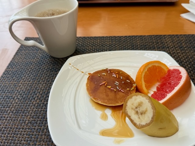 ヒルトンロゴの入ったワッフルもありましたが、パンケーキのほうをいただきました。