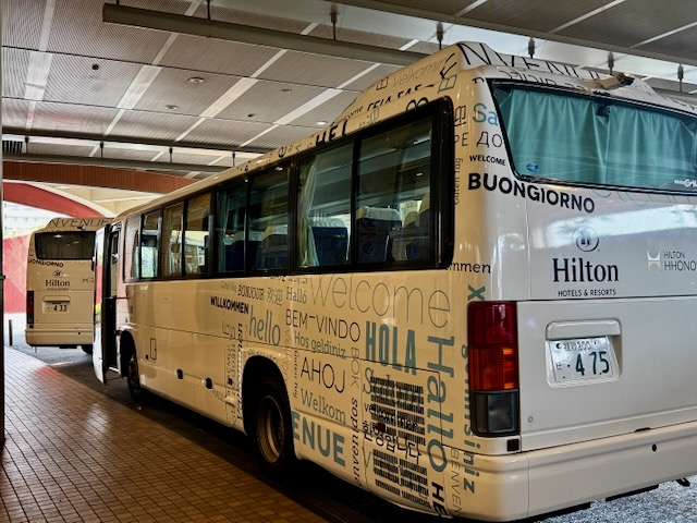 バスを待ってる時に、ヒルトンのバスが停まってたんですが、これが無料シャトルバスなのかな?