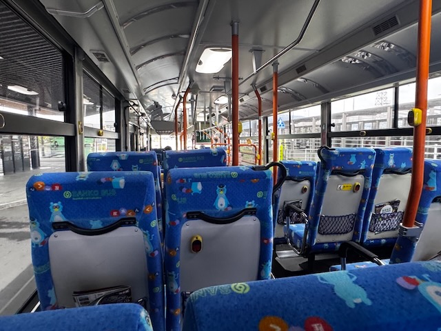 さっきの満席機内が嘘のようなバス車内。