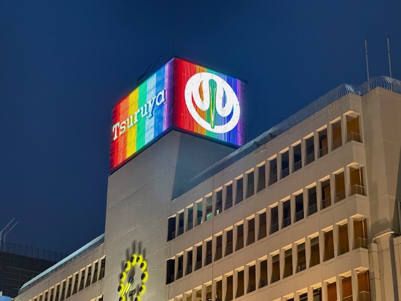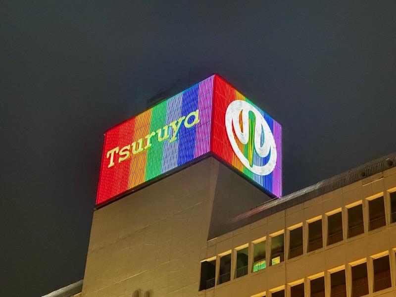 夜もお出かけして、戻ってきたら、ホテルの向かいにある「鶴屋百貨店」さんの電飾がド派手でビックリ!