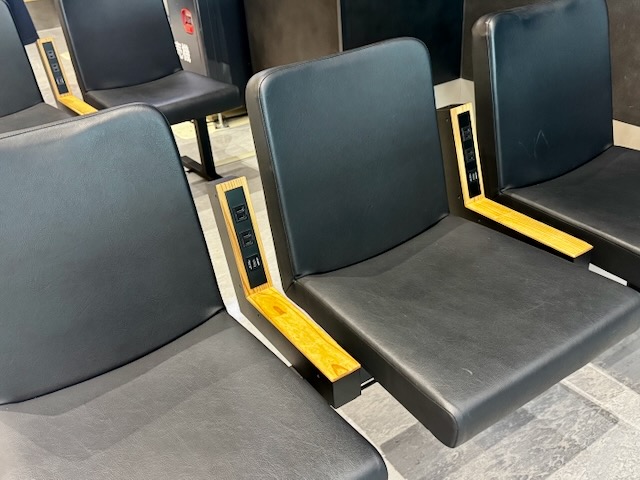 キッズスペースもあるし、椅子にはコンセントとUSBまで付いてるし、さすが新しい空港といった感じでした。