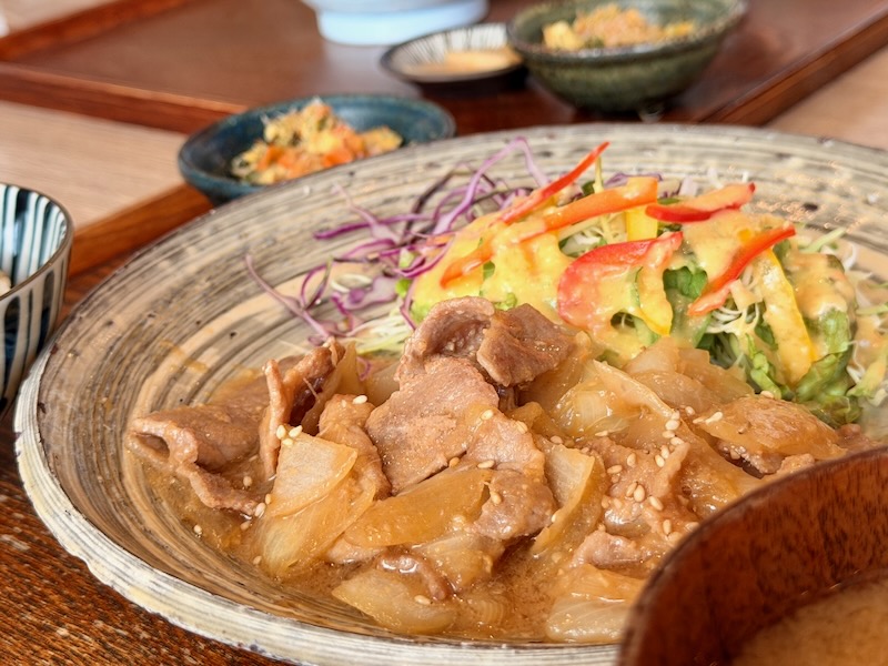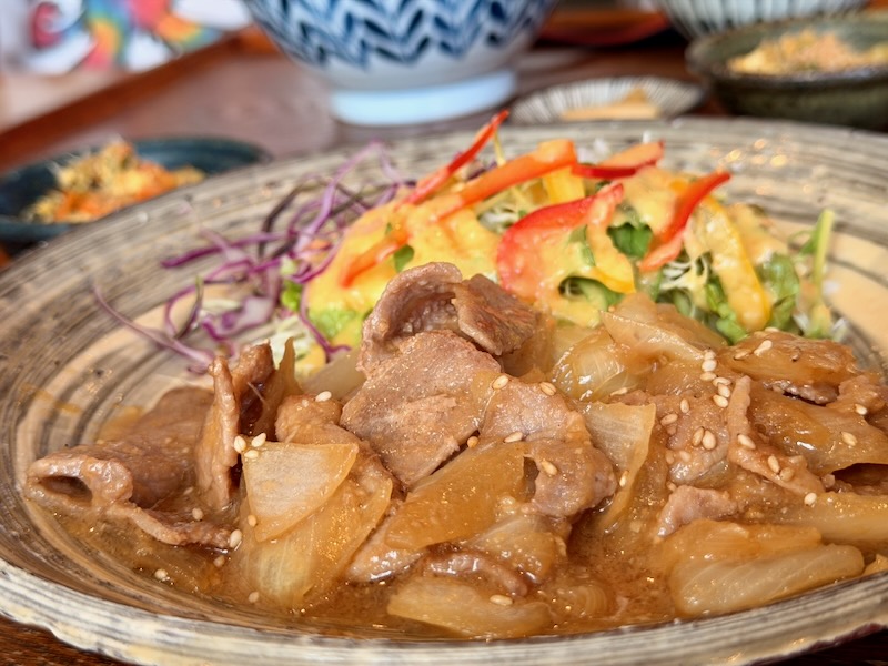 メインの生姜焼きは、ニンニク入りの特製味噌しょうがダレで、めっちゃ美味しそう!