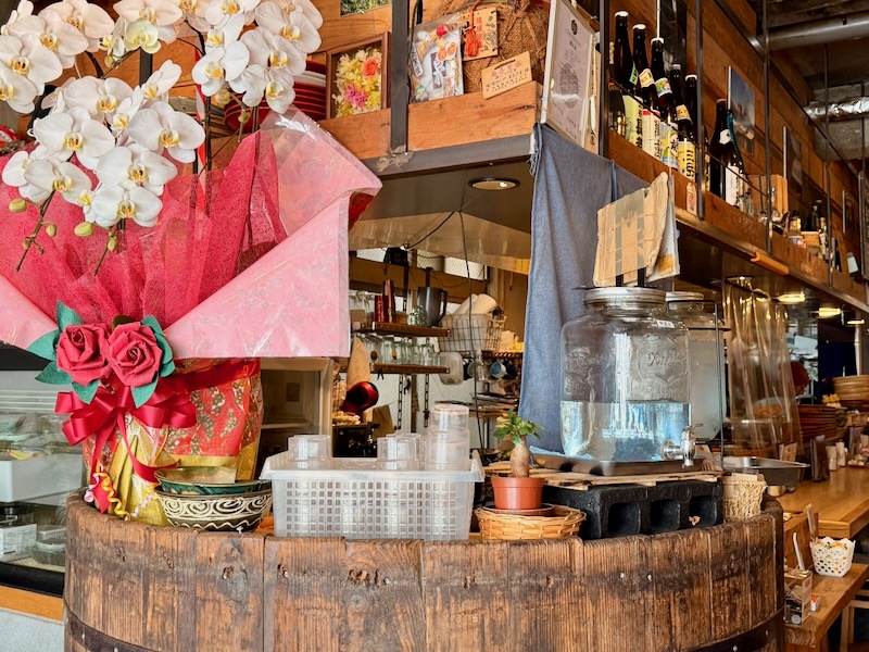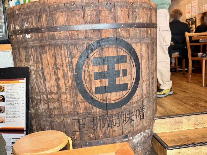 入口スグのテーブル席に座ったんですが、スグ横には、大きな味噌樽がありました。