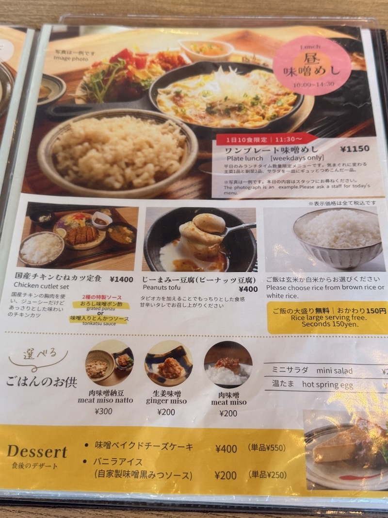 お得なワンプレートランチも気になるし、「味噌黒みつソース」のバニラアイスクリームも食べてみたいし・・・