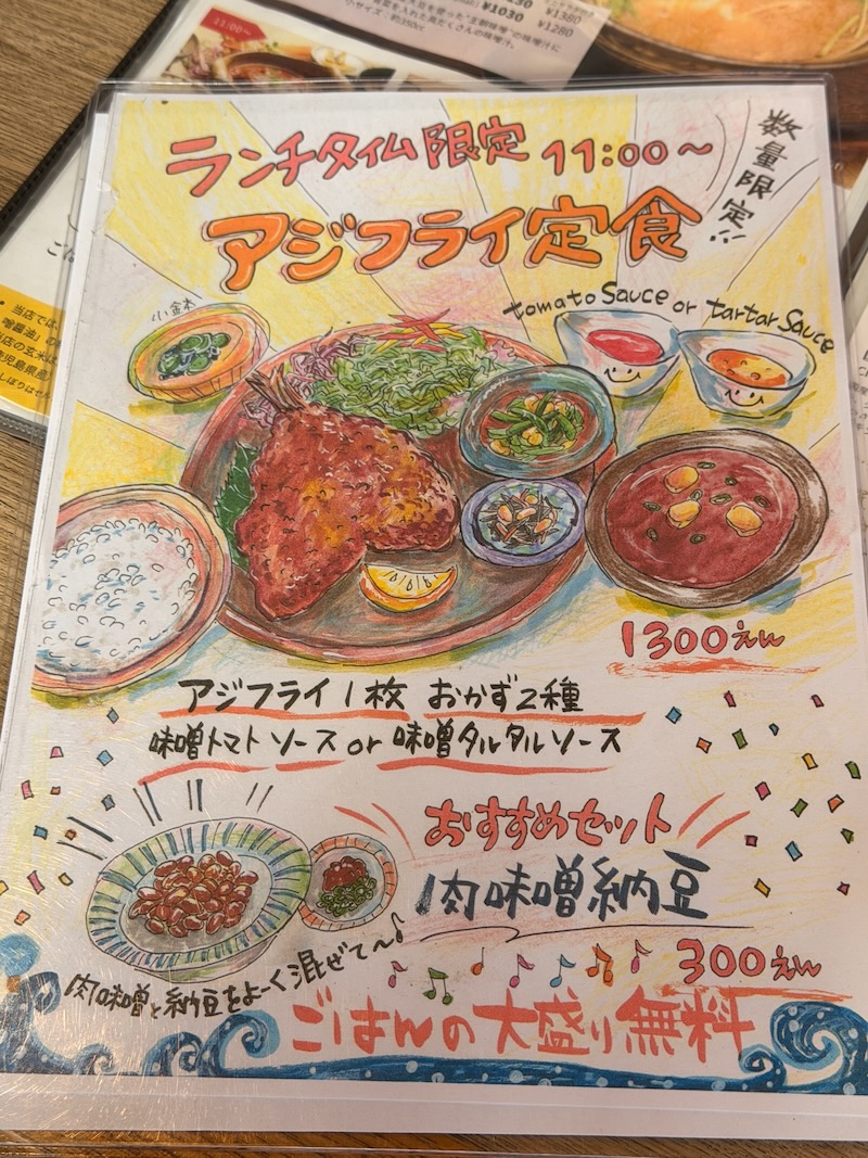 「アジフライ定食」も美味しそうでしたが、せっかくなので今日は他のをいただくです。