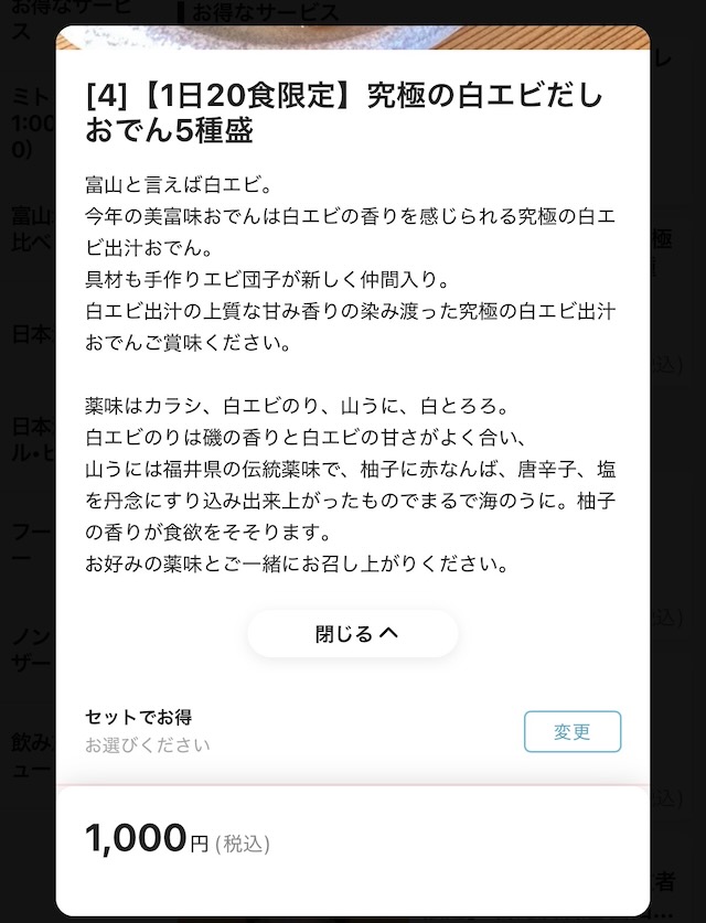 バール・デ・美富味/白エビだしのおでんに富山の日本酒を合わせるYO!