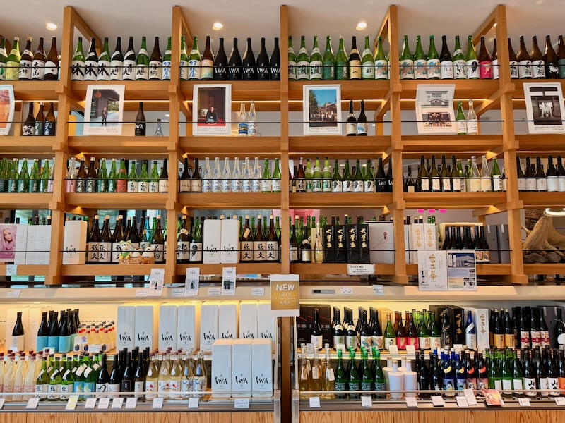 ところで、座った席からの眺めはこんな感じで、目の前に日本酒の壁がありました。