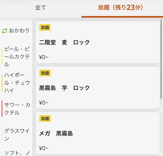 飲み放題制限時間残り23分にナリました!
