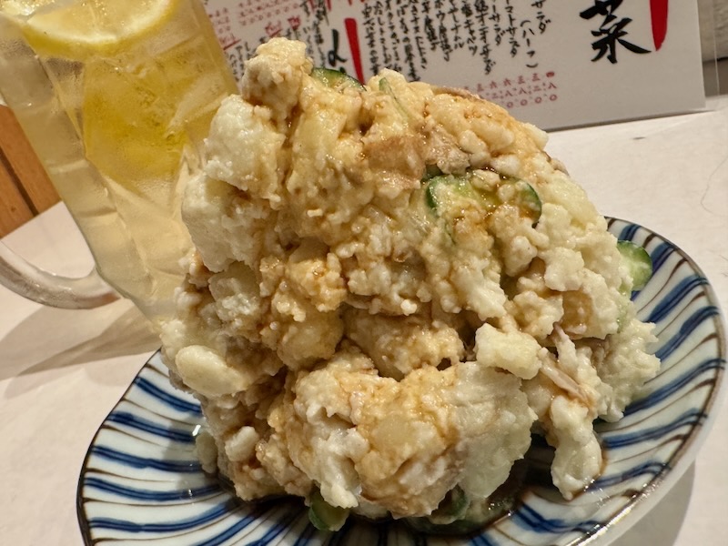 「名物ポテサラ」ってどんなんだろうと思ってたら、ハーフなのに凄いボリュームでした!