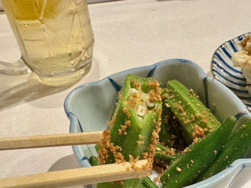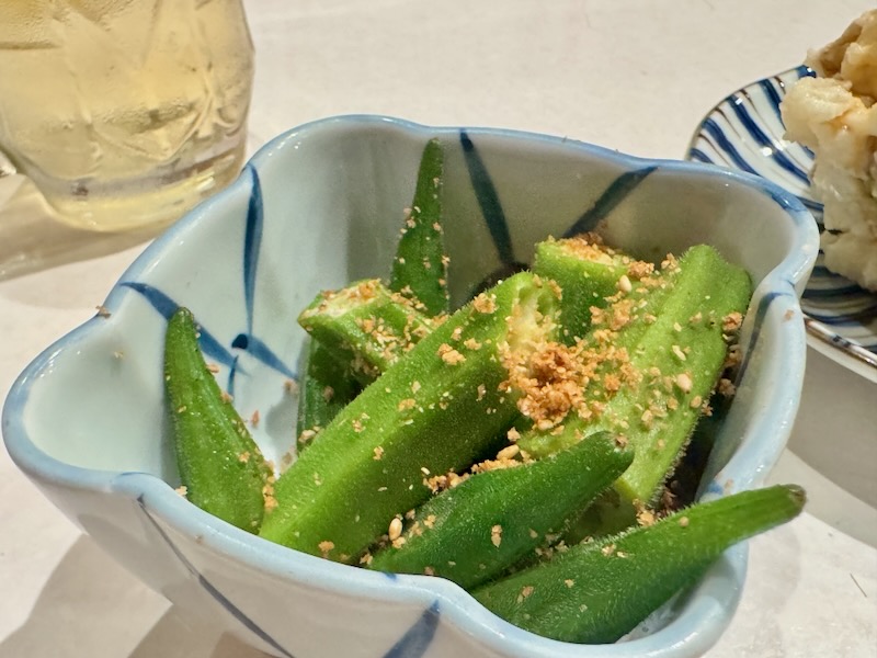 水気が少なくて、オクラは軽く茹でてるだけなので、食感がしっかりしてて、青い香りも丸ごと味わえる仕様でした。