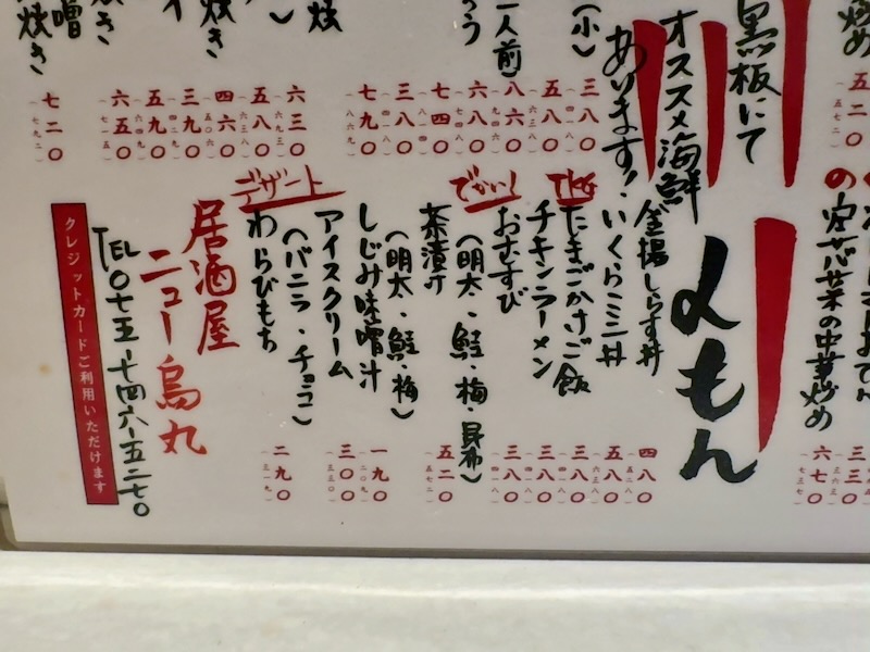 メニューは表に出てたのと同じですがこんな感じで、カテゴリーごとに色々ありました。