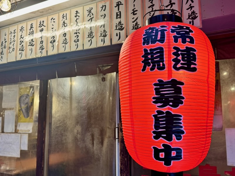 気にはなるけど、あと一押し何か欲しいなぁ、と思ってたら、赤提灯に「新規常連募集中」と書かれてました。