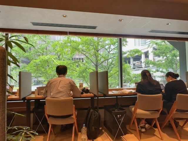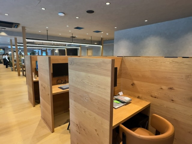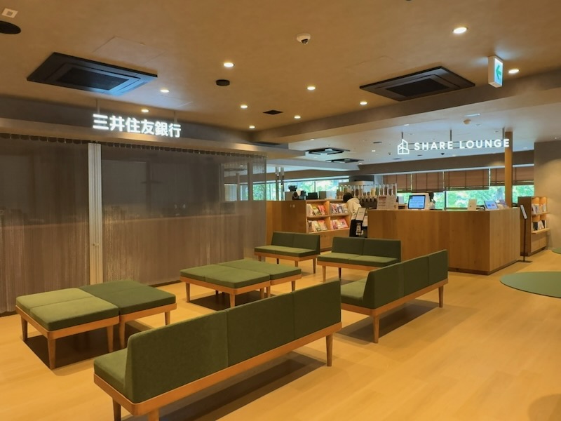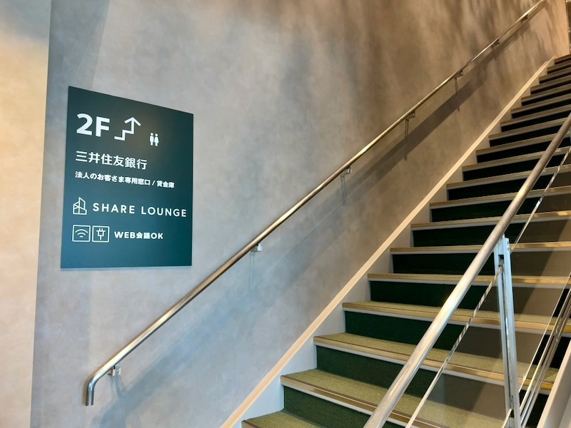 もともとは、三井住友銀行の「オリーブラウンジ」を、シェアラウンジに仕立て上げたという事だと思ってるんですが、銀行併設というのは不思議な光景に感じました。