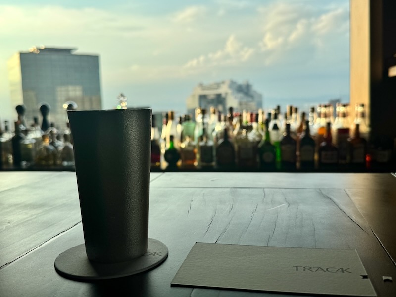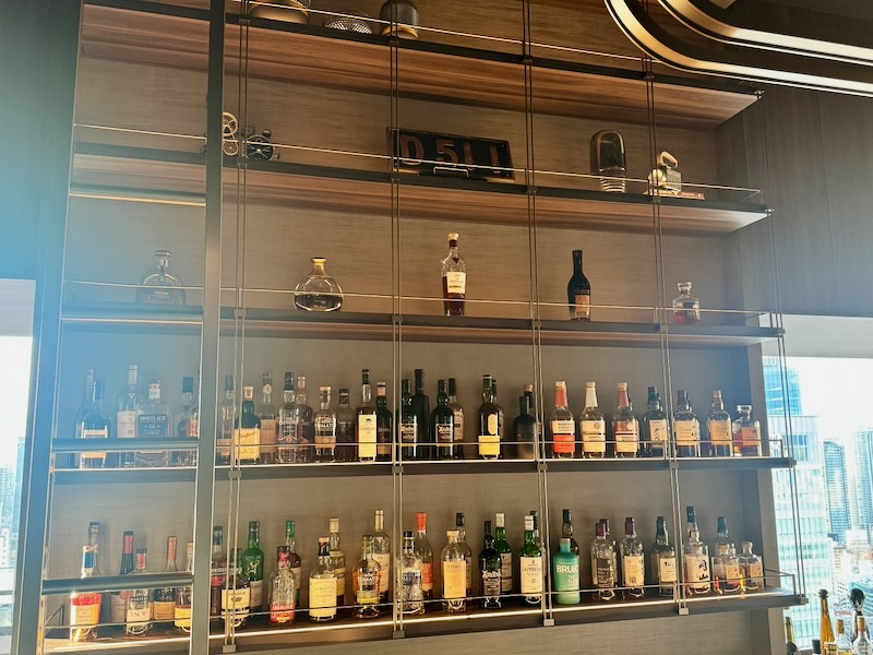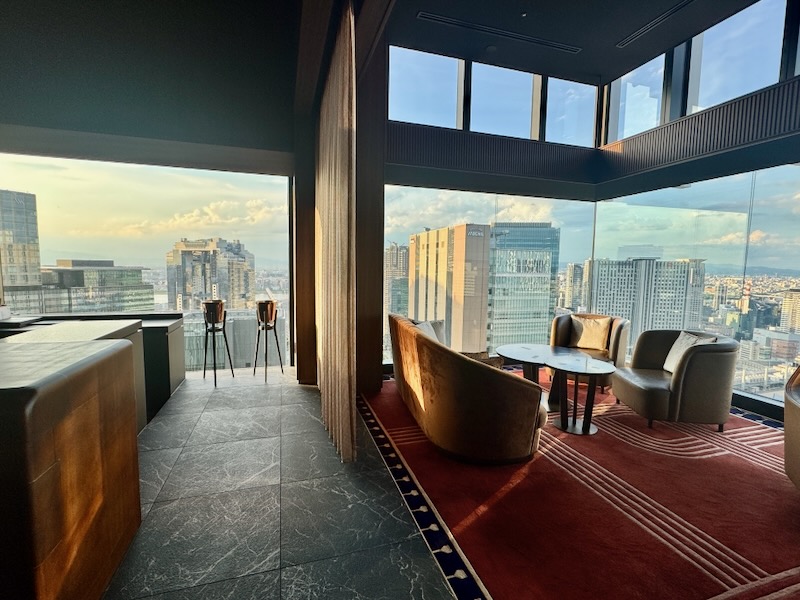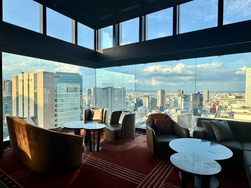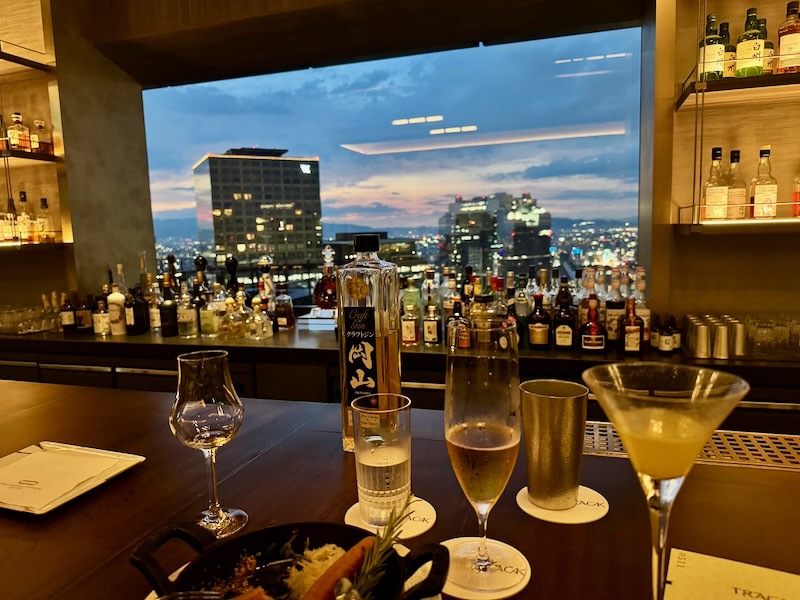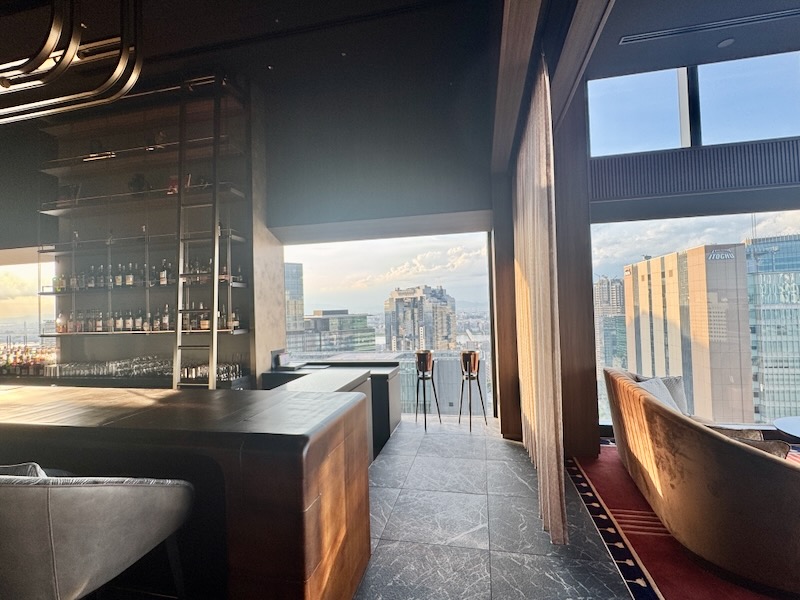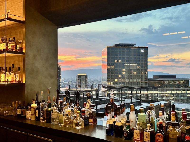 入ると長いバーカウンターがあって、バックバー横の窓からはスカイビル側の景色が見えました。