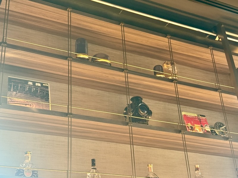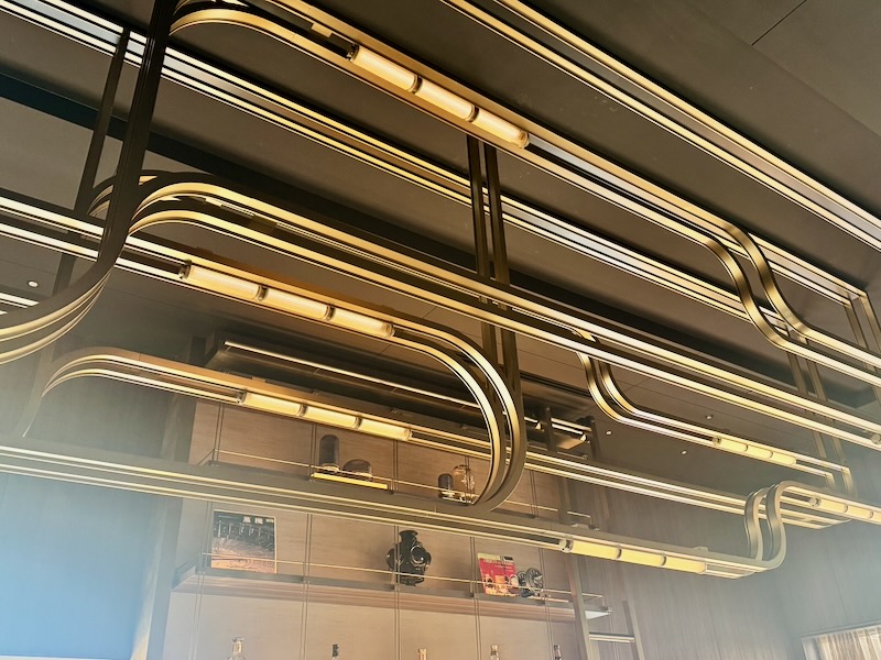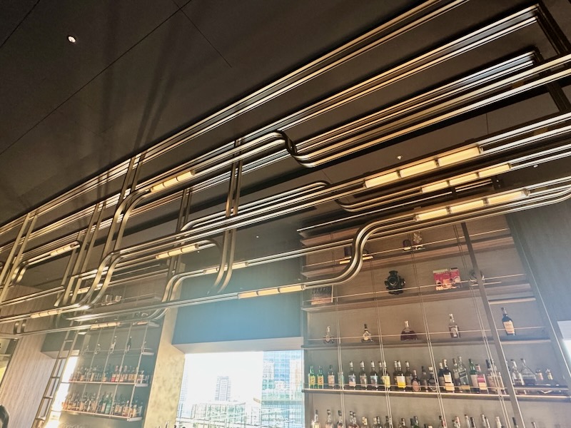 カウンター真上には、鉄道レールがモチーフと思われる照明が走り回ってるようなイメージでした。