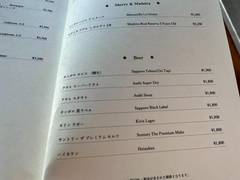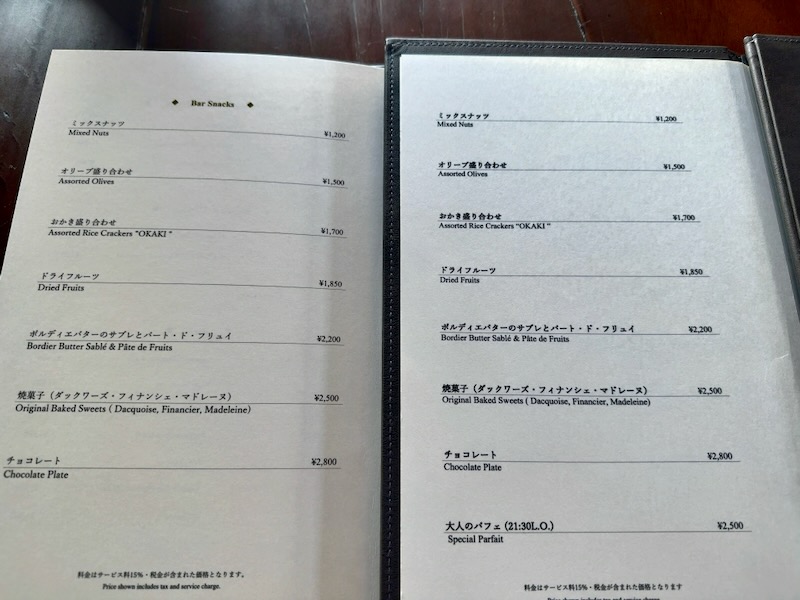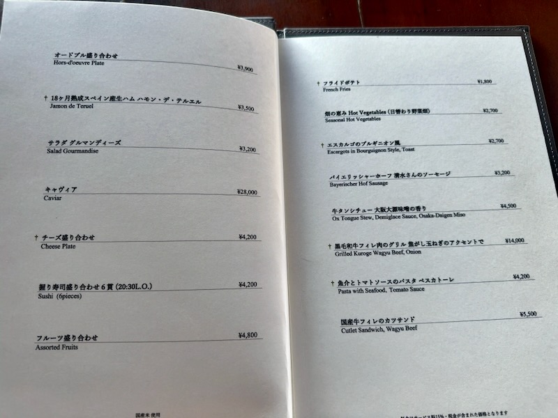 なんとなくルームサービスメニューみたいに感じられるラインナップとお値段設定でした。