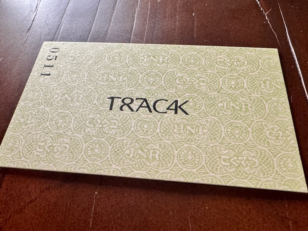 余談ですが、「どうして切符の間が不規則に空いてるのかな?」と思って聞いてみたら、デザイナーさんが作成されたので、こういうデザインということでした。