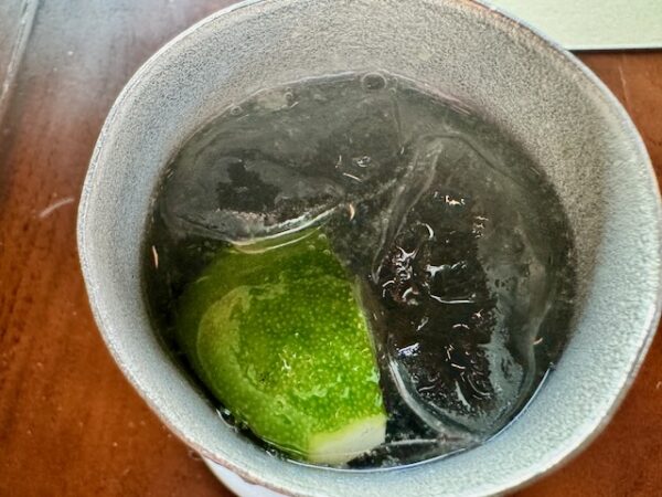 せっかくなので、「シグネチャーカクテル」を何かいただこうと思ったんですが、お聞きしてみると、結構どれも甘めな感じだったので、無難そうなジントニックにしちゃいました。