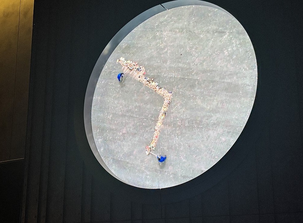2人の清掃員が、針に見立てたごみを延々と掃除し続ける様子が時計になってるアート作品です。