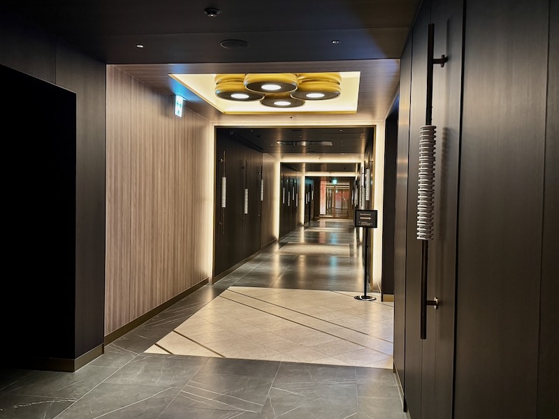 客室階へ向かうエレベーターホールは、突き当り手前の左側です。