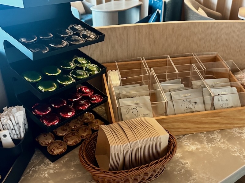 コーヒーは、業務用ネスプレッソマシンがあって、紅茶等のティーバッグもありました。