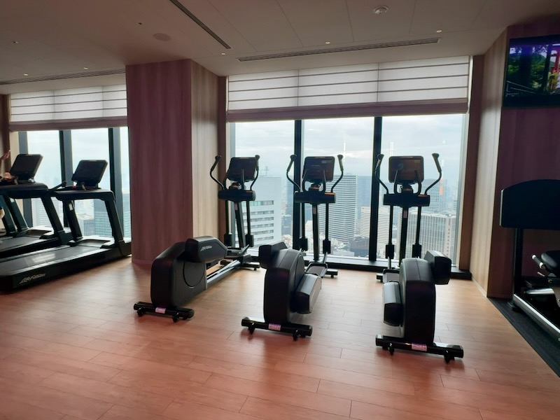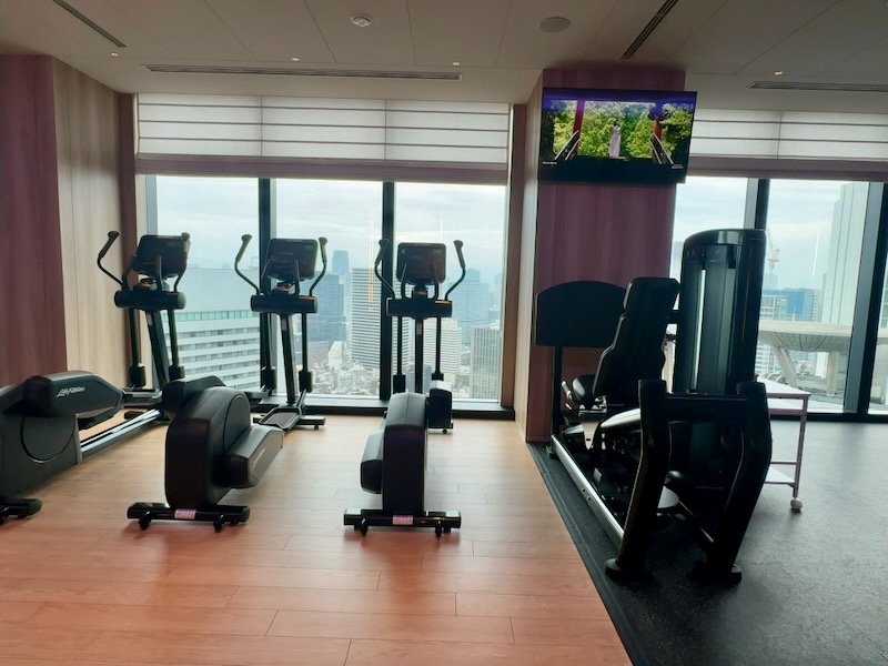 高層階の窓から外を眺めながらの有酸素マシンは、「大阪マリオット都ホテル」さんのジムを思い出しました。