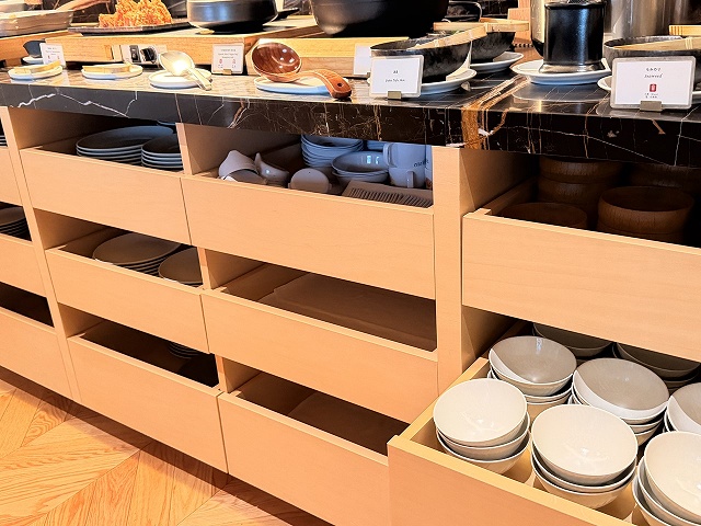 最初気付かなかったんですが、器はビュッフェボードの下の引き出しにありました。