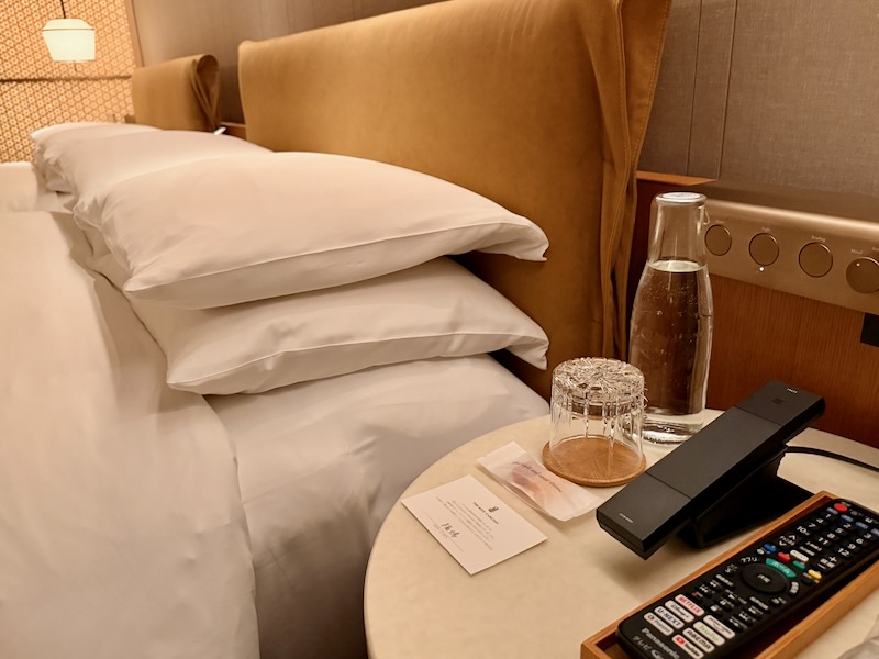 左右のナイトテーブルには、お水セットが置かれていました。