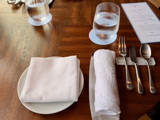 2名席にはサイドテーブル的なのが付いてるところが、高級ホテルらしい気がしました。