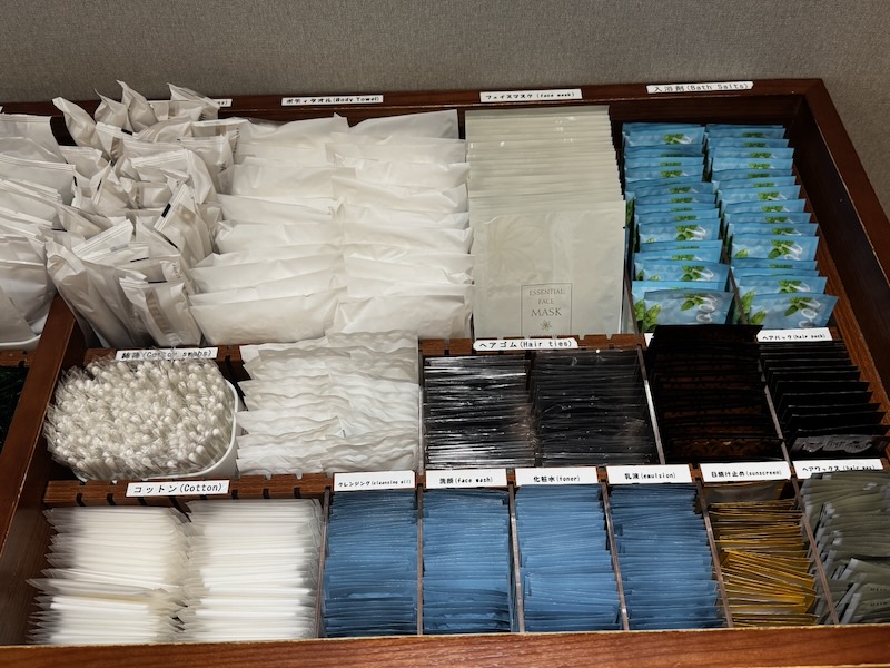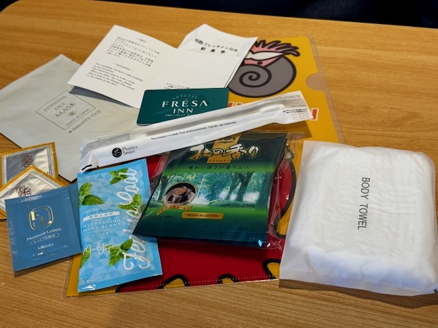 歯ブラシやかみそり、基礎化粧品や綿棒に、ボディタオル、フェイスマスク等など、なかなか充実のラインナップでした。