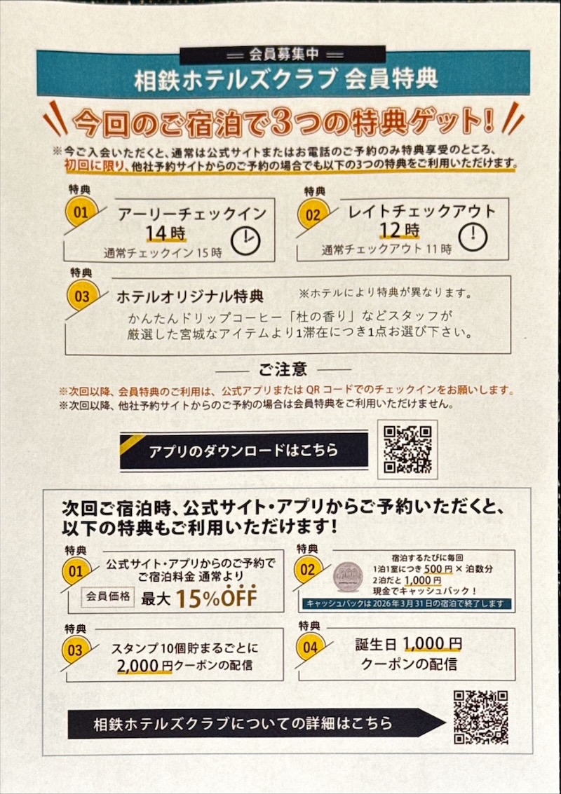 せっかく「相鉄ホテルズクラブ」に入会したので、他のエリアでも利用してみたいと思ってるところです。