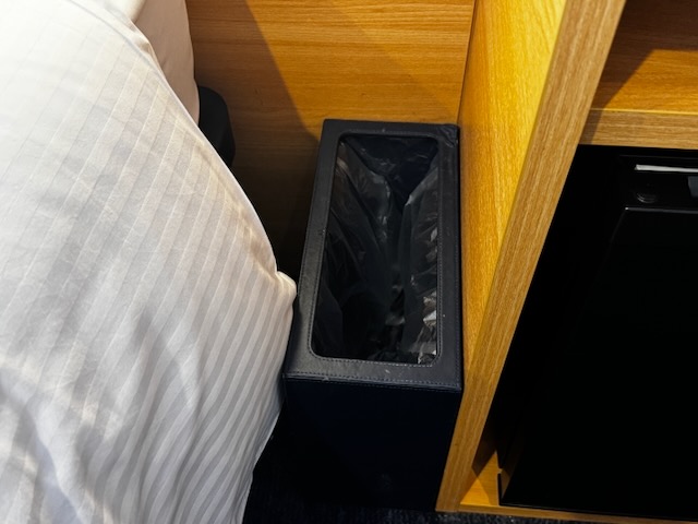 ベッドとの間にゴミ箱が1つ。
