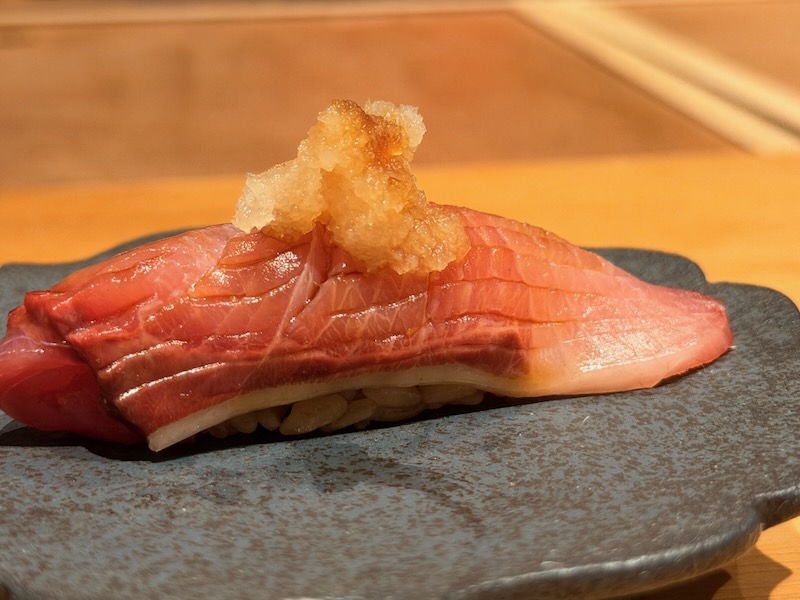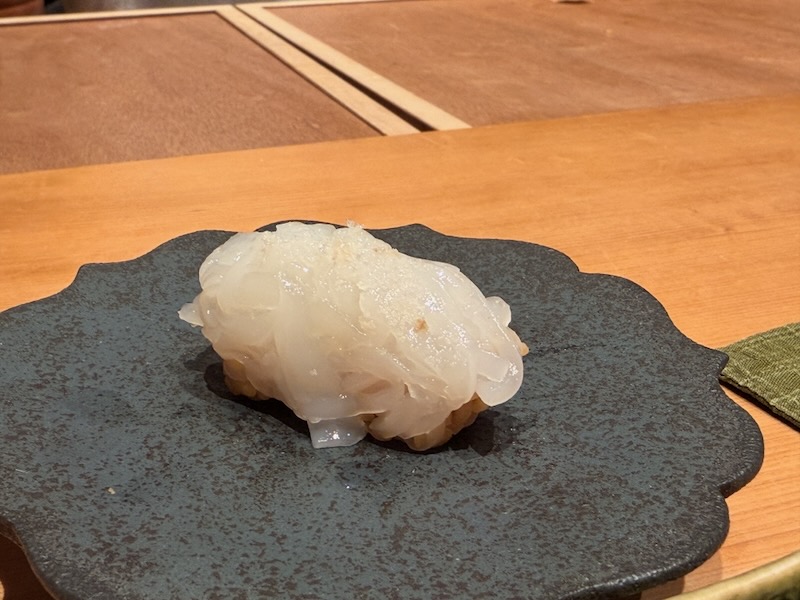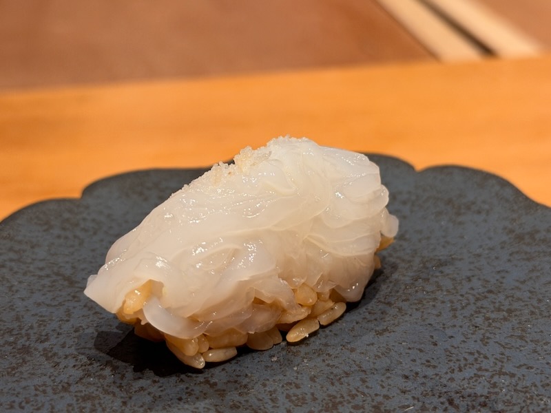 もう一つ、赤酢のシャリは気持ちかために感じていたんですが、このイカの弾力と絶妙なバランスで、食感的にはこれが一番楽しく美味しく感じられました。